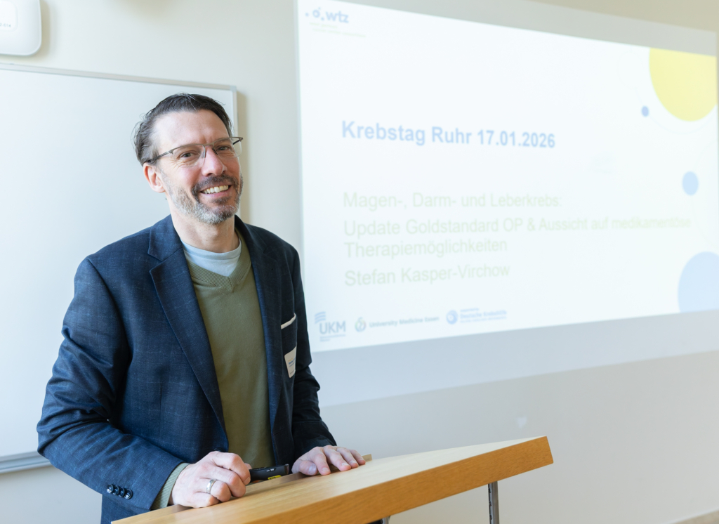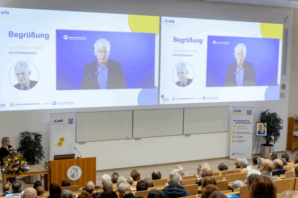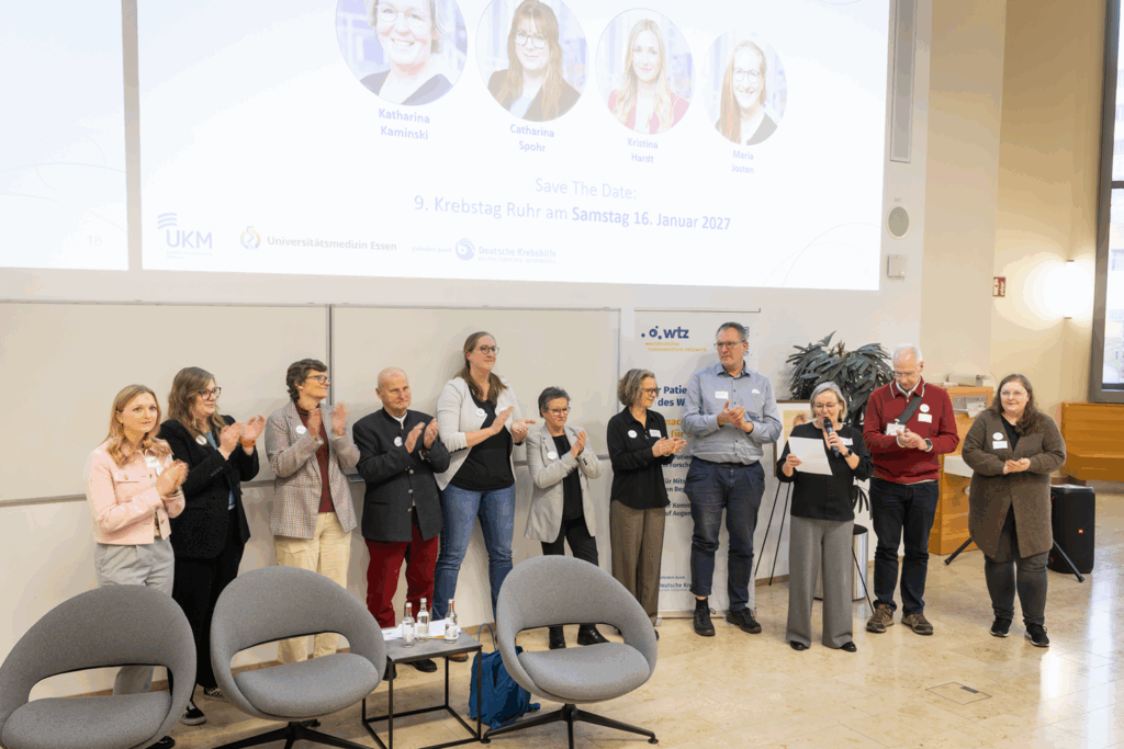 Am Samstag, 17. Januar 2026, versammelten sich rund 400 Teilnehmende aus der Region Ruhrgebiet im Lehr- und Lernzentrum am Campus der Universitätsmedizin Essen (UME) sowie digital über Zoom zum 8. Krebstag Ruhr. Inhaltlich gestaltet wurde die Veranstaltung vom WTZ-Patientenbeirat, organisiert und begleitet wurde sie von der WTZ-Geschäftsstelle. Die Moderation übernahm das Team der WTZ-Patientenbeteiligung.