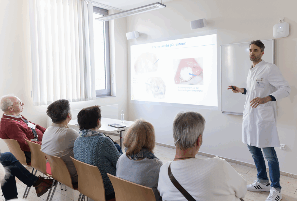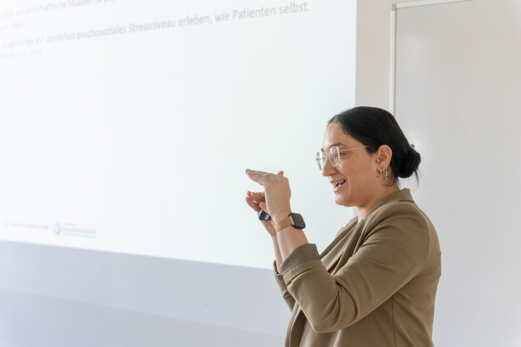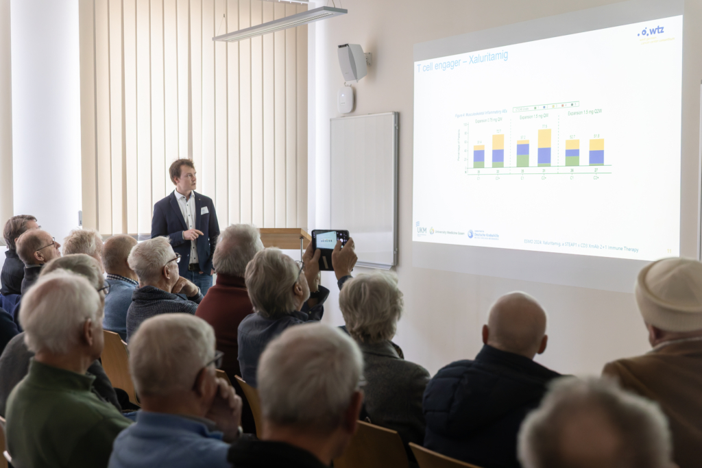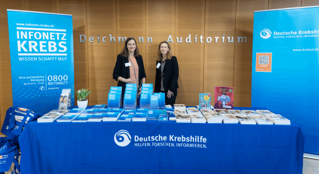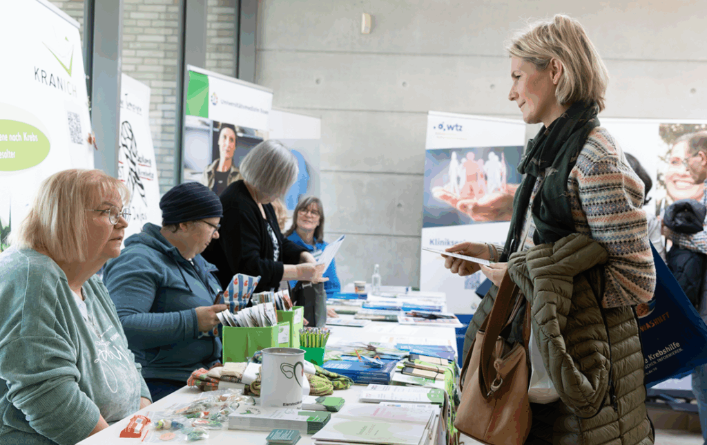 Die Keynotes beleuchteten neueste wissenschaftliche Fortschritte: Prof. Dr. Christian Reinhardt nahm das Publikum mit auf eine Reise durch das Immunsystem und seine Rolle in der Krebsbekämpfung, während Prof. Dr. Beate Timmermann und Prof. Dr. Felix Nensa zeigten, wie künstliche Intelligenz in der Strahlentherapie heute schon präzisere Diagnostik und Therapien ermöglicht – beides bot den Besucher*innen spannende Einblicke. Ergänzt wurden diese von zahlreichen Workshops, die von Brustkrebs über Prostatakrebs bis hin zu Lungenkrebs und Hirntumoren viele Krebserkrankungen abdeckten und darüber hinaus Sessions zu allgemeinen Themen wie Patientenbeteiligung, Psychoonkologie, Bewegung & Ernährung, Wund- und Stoma-Management und Familie & Zugehörige boten.