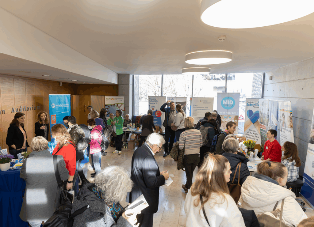 Neben den Workshops und Keynotes waren zahlreiche Selbsthilfegruppen vertreten, die den Krebstag Ruhr mit ihrer Präsenz an eigenen Infoständen und ihrer Patientenexpertise enorm bereicherten. Die Besucher*innen konnten sich zudem bei den vielfältigen Unterstützungsangeboten der UME Informationen im direkten Kontakt einholen und aktiv teilnehmen – im Selbsthilfe-Café, bei praxisnahen Aktionsangeboten wie dem partiellen Hautkrebsscreening, Schnupper-Sport- und Bewegungseinheiten, Achtsamkeits-Impulsen und auch Vorträgen zu Physiotherapie und psychoonkologischer Begleitung. So konnten Betroffene und Zugehörige direkt praktische Hilfestellungen für ihren Alltag erfahren.